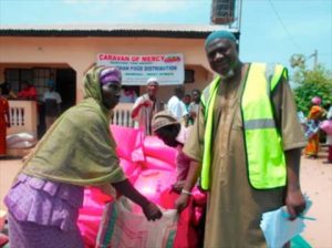 The Caravan of Mercy are providing support to three hundred and fifty families, and on each of this occasion, they give each beneficiary 25kg of rice, 4kilos of sugar,and two litre of oils.